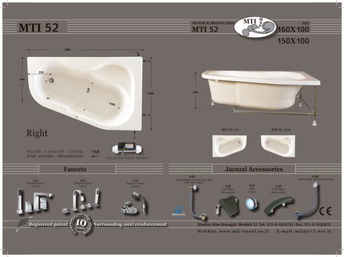 אמבטיה אקרילית מחוזקת פינתית 100\160