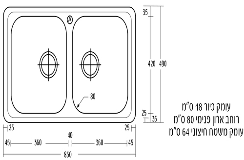כיור מטבח דגם “אדמירל 20” מנירוסטה תוצרת REGINOX ההולנדית הוא כיור המאופיין בעיצוב הולנדי המתבטא בתשומת לב לפרטים הקטנים ואיזון נכון בין פונקציונליות לבין עיצוב הכיור, עיצוב הכיורים של החברה הוא עיצוב זוכה פרסים וקיבל פרס עיצוב מ RED DOT 2016. לכל כיורי REGINOX ישנה אחריות של 5 שנים ונתונים מגוון אביזרים משלימים בתוספת תשלום. *אופי ותכונות: התקנה שטוחה. כיור כפול עם אפשרות לחור לברז. הכיור מסופק עם 2 ונטילים “3.5 המתאימים לטוחן אשפה וגם קליפסים להידוק הכיור למשטח. מידות: עומק משטח חיצוני- 60 ס”מ. עומק כיור- 18 ס"מ בהתאמה. מתאים לארון- 85 ס"מ. *ניתן לרכוש סיפון תוצרת גרמניה בתוספת תשלום.